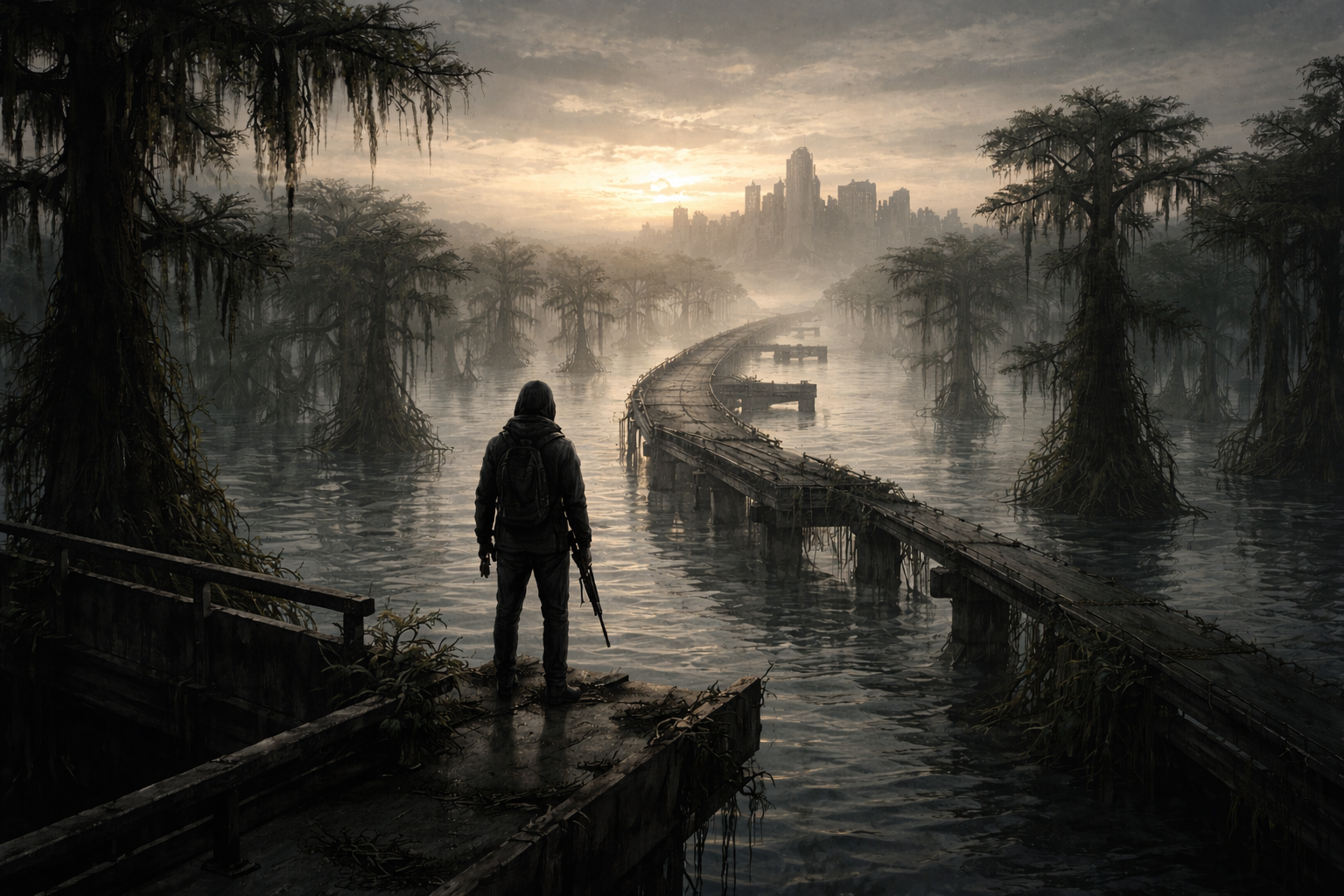 No exposition. No cutscenes. The collapsed overpass, the handwritten sign, the locked room with something still inside. The world was here before you and it will be here after.